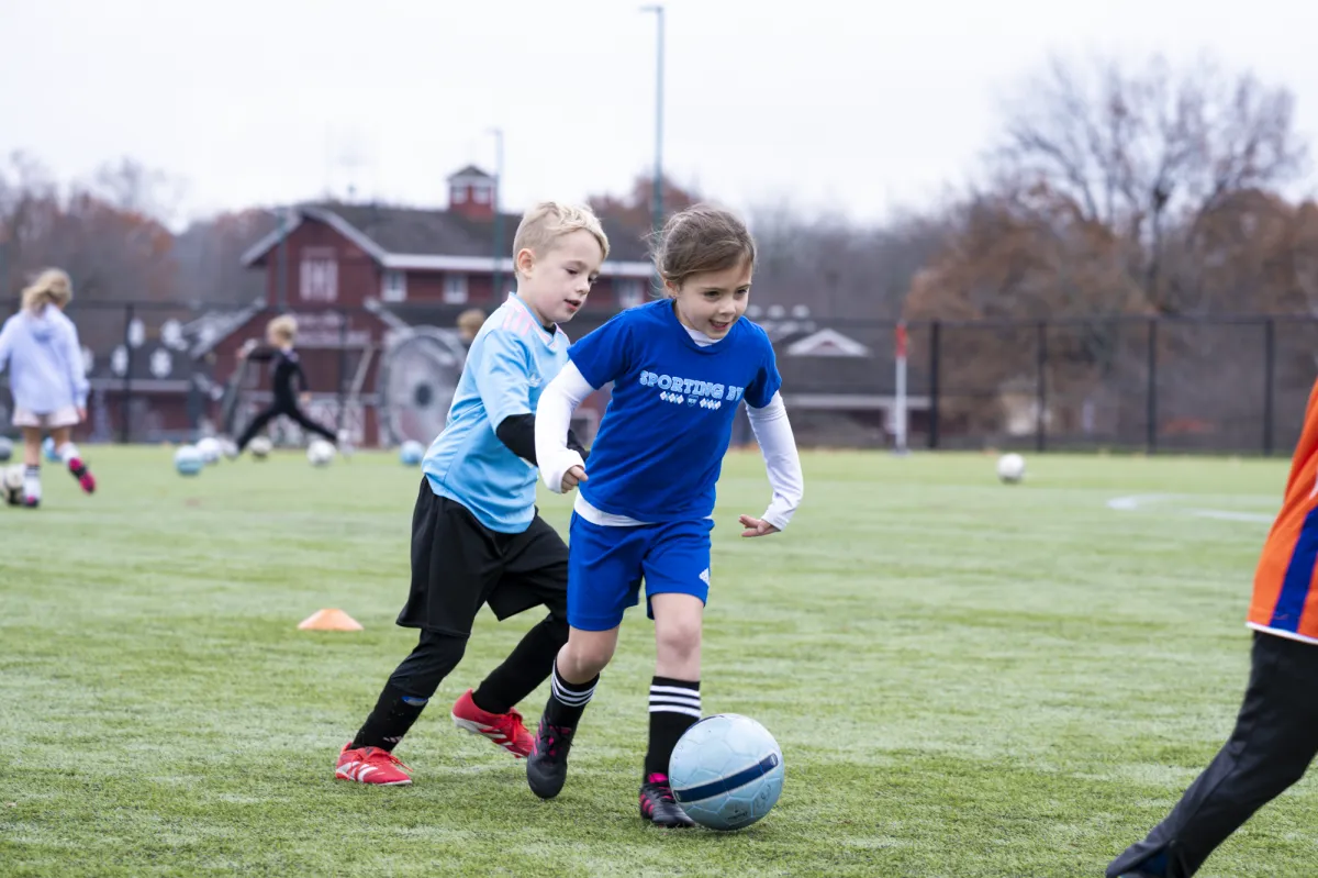 Players are progressively taught a variety of soccer skills including dribbling, passing and receiving, juggling, shooting and controlling.